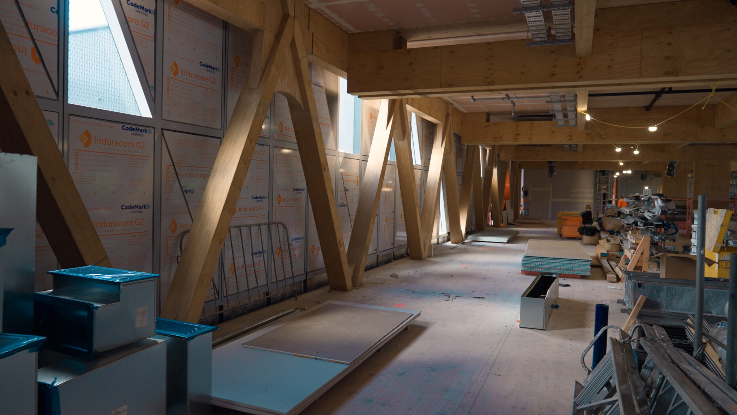 Fisher & Paykel Appliances’ new Green Star headquarters in Penrose features New Zealand’s largest cross-laminated timber structure to date – a three-storey development comprising three buildings: the Home building (offices), the Shed building, and the Garage. This innovative project required specialised warm roof installation using the Nuralite systems across the Shed and Home buildings.