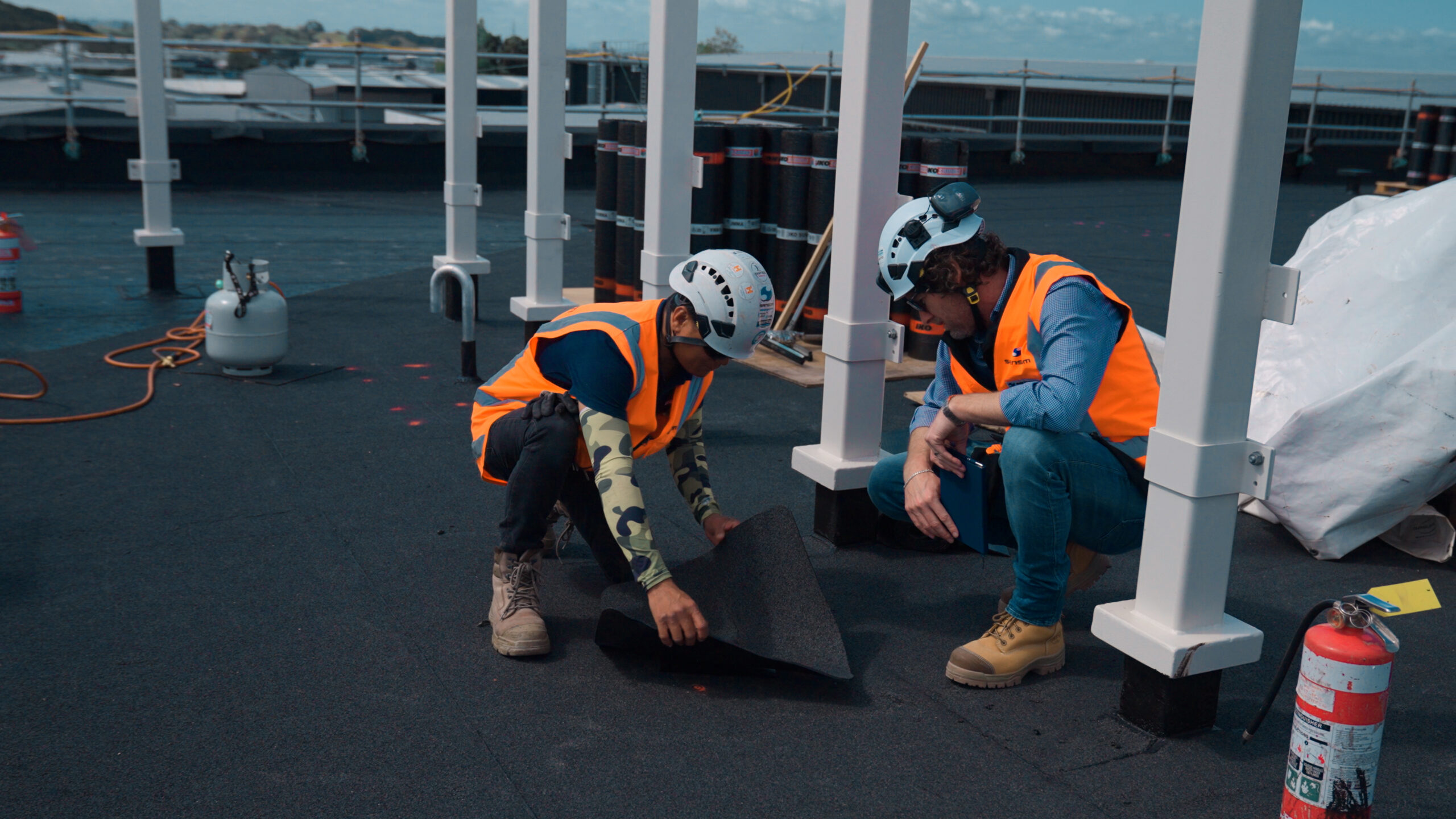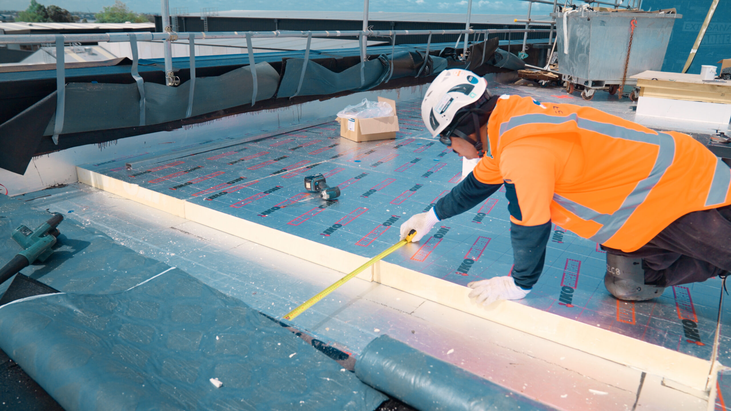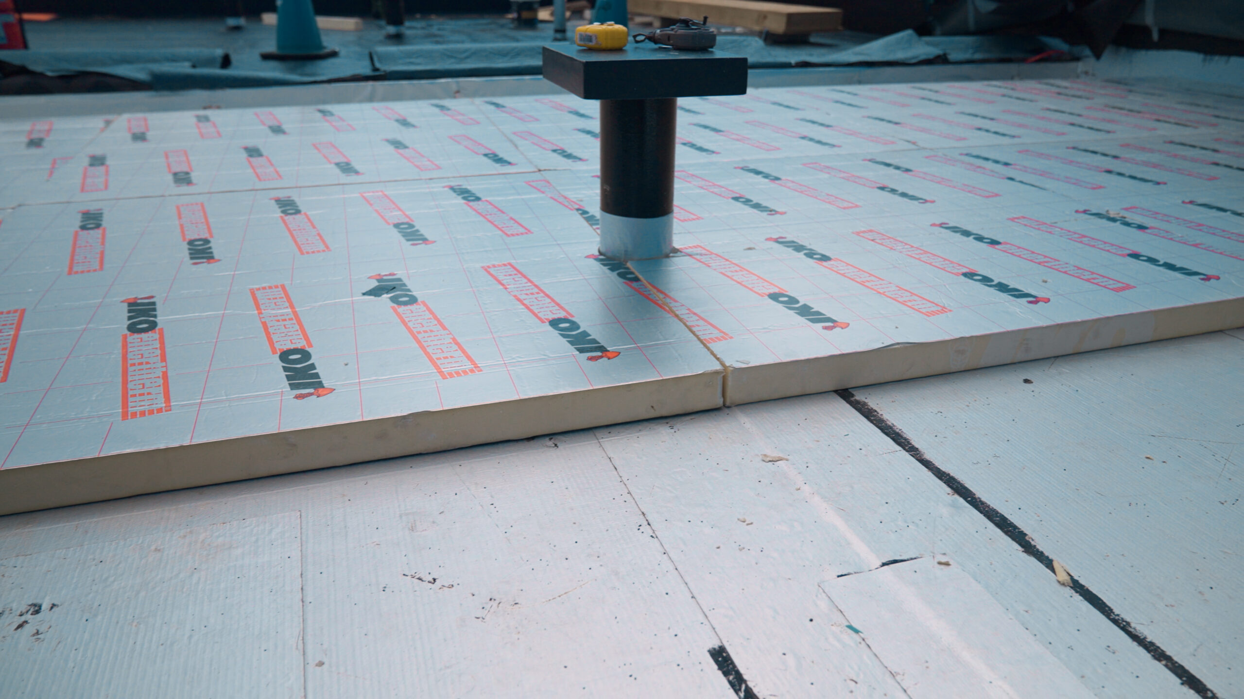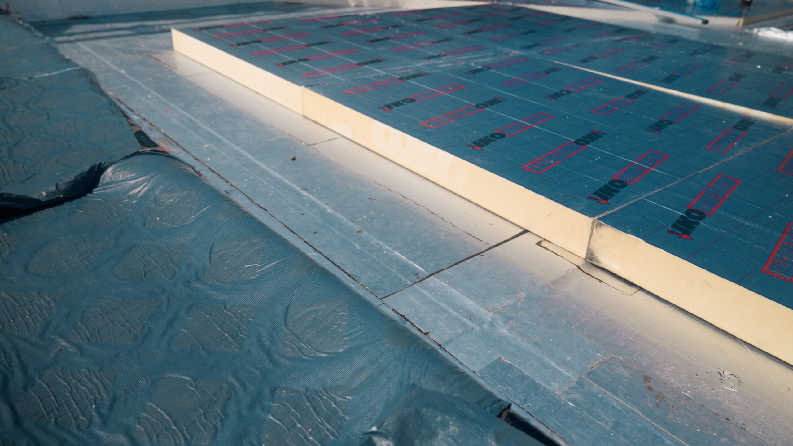 Night Joints: To protect completed daily sections of the roofing system, we installed night joints. Every stopping point was made completely watertight each evening before continuing the next day. This compartmentalised approach was critical as unintended water ingress into a warm roof creates its own environment, causing movement and potential long-term system failure.