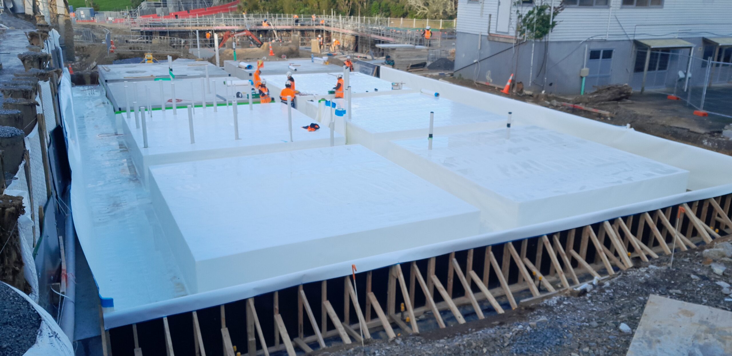 There are a total of 5 zones in this project and we’ve commenced installing the Preprufe 300R Bituthene 3000 tanking membranes to the under slabs and ground beams in Zone 1.